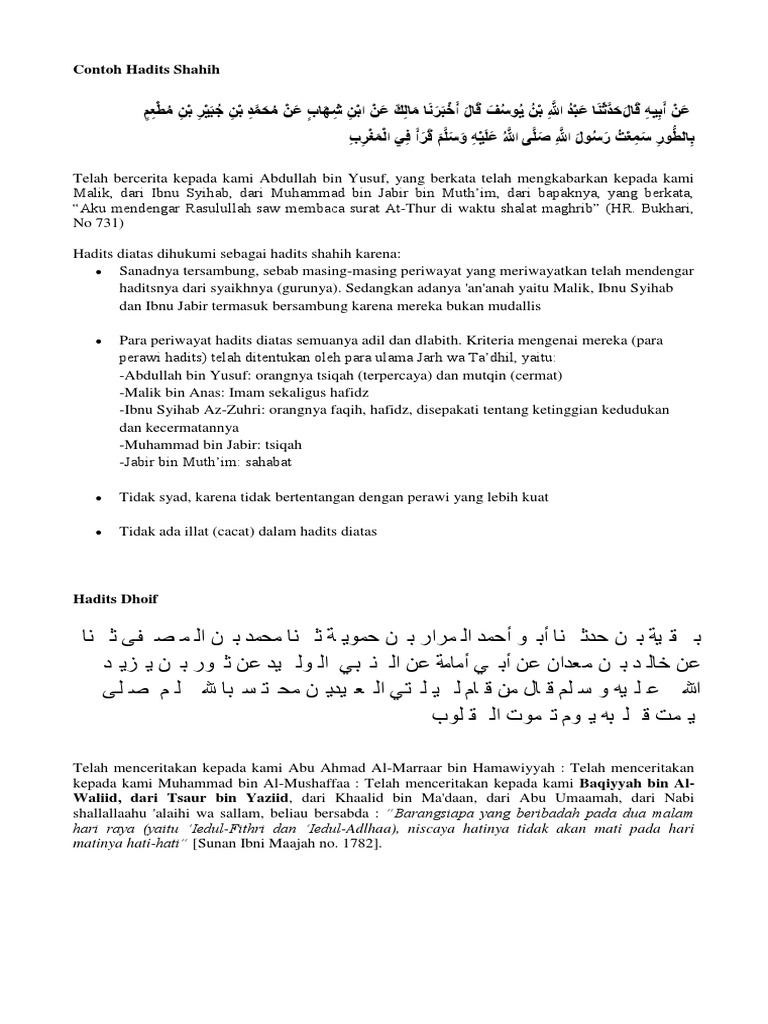 Adapun contoh hadits yang shahih adalah sebagai berikut. Hadits yang ittishal sanadnya diriwayatkan oleh orang. Pengertian Sanad Contoh Macam dan Penjelasannya Lengkap.